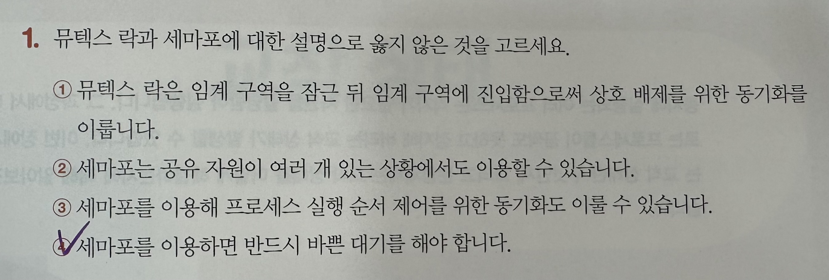 --> 잠겨 있는지 쉴 새 없이 반복하며 확인하는 대기 방식을 바쁜 대기라고 한다.